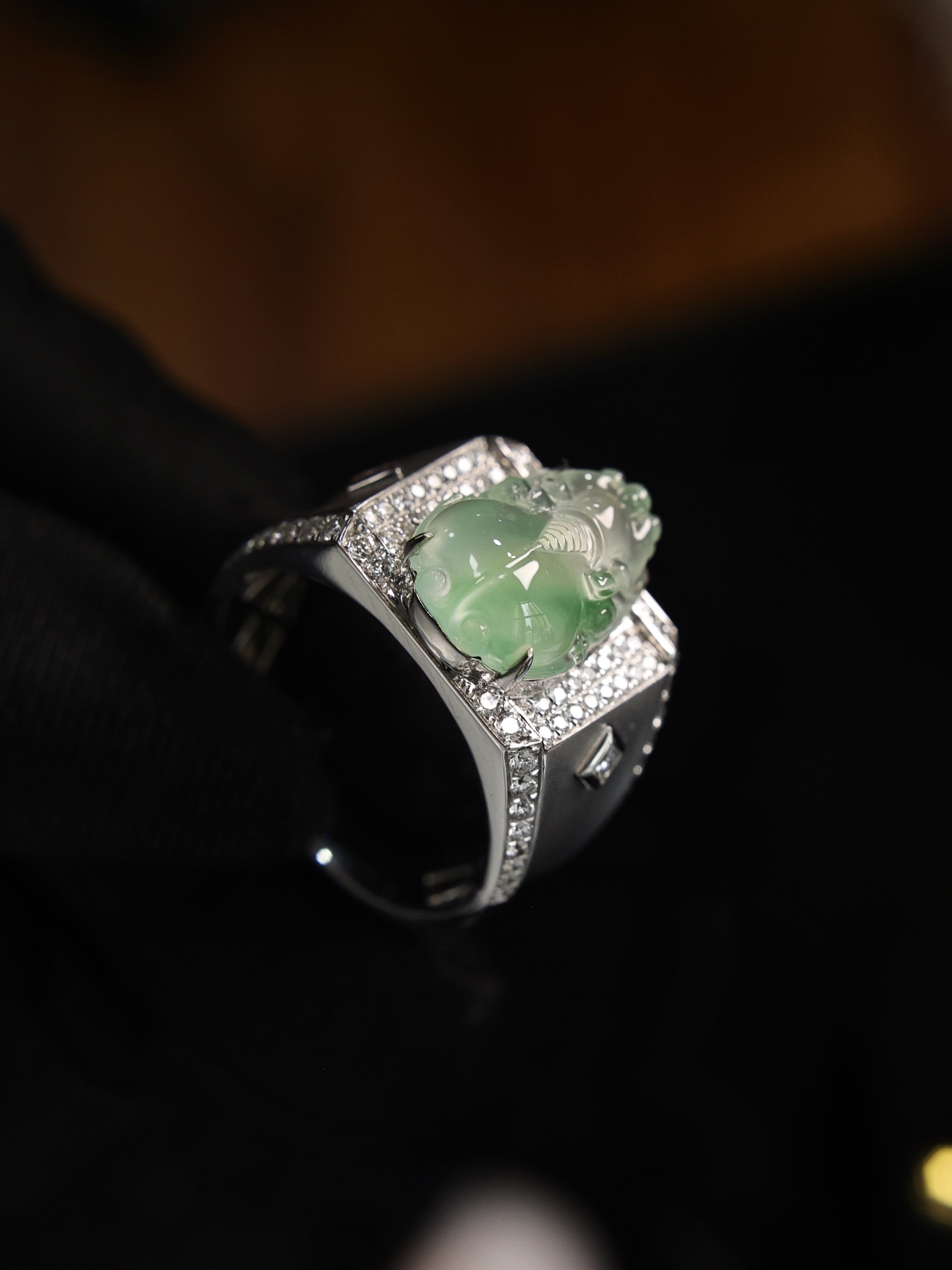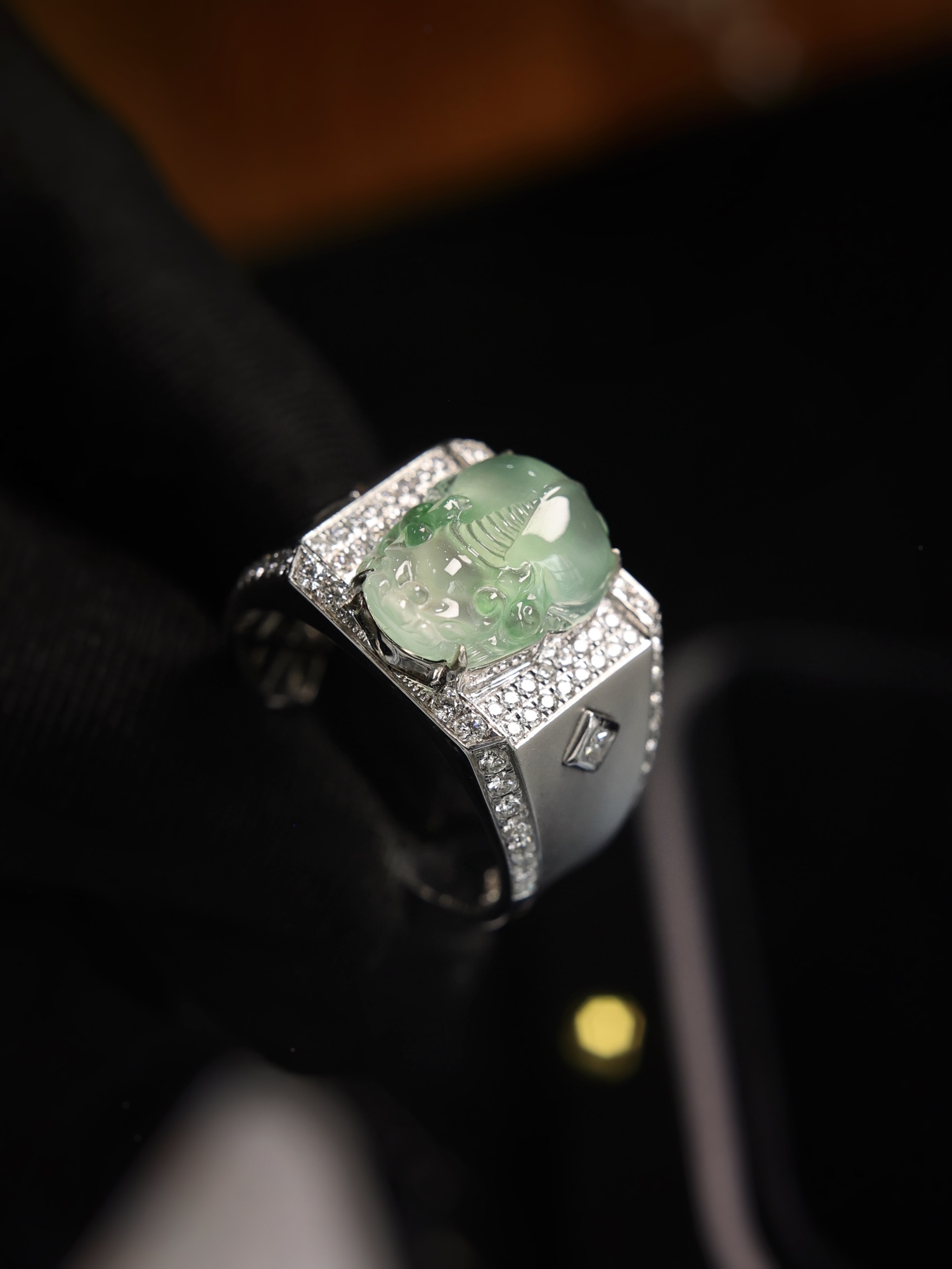 Jade ring, 18k gold set with pixiu ring, bare stone: 15.2-10.8