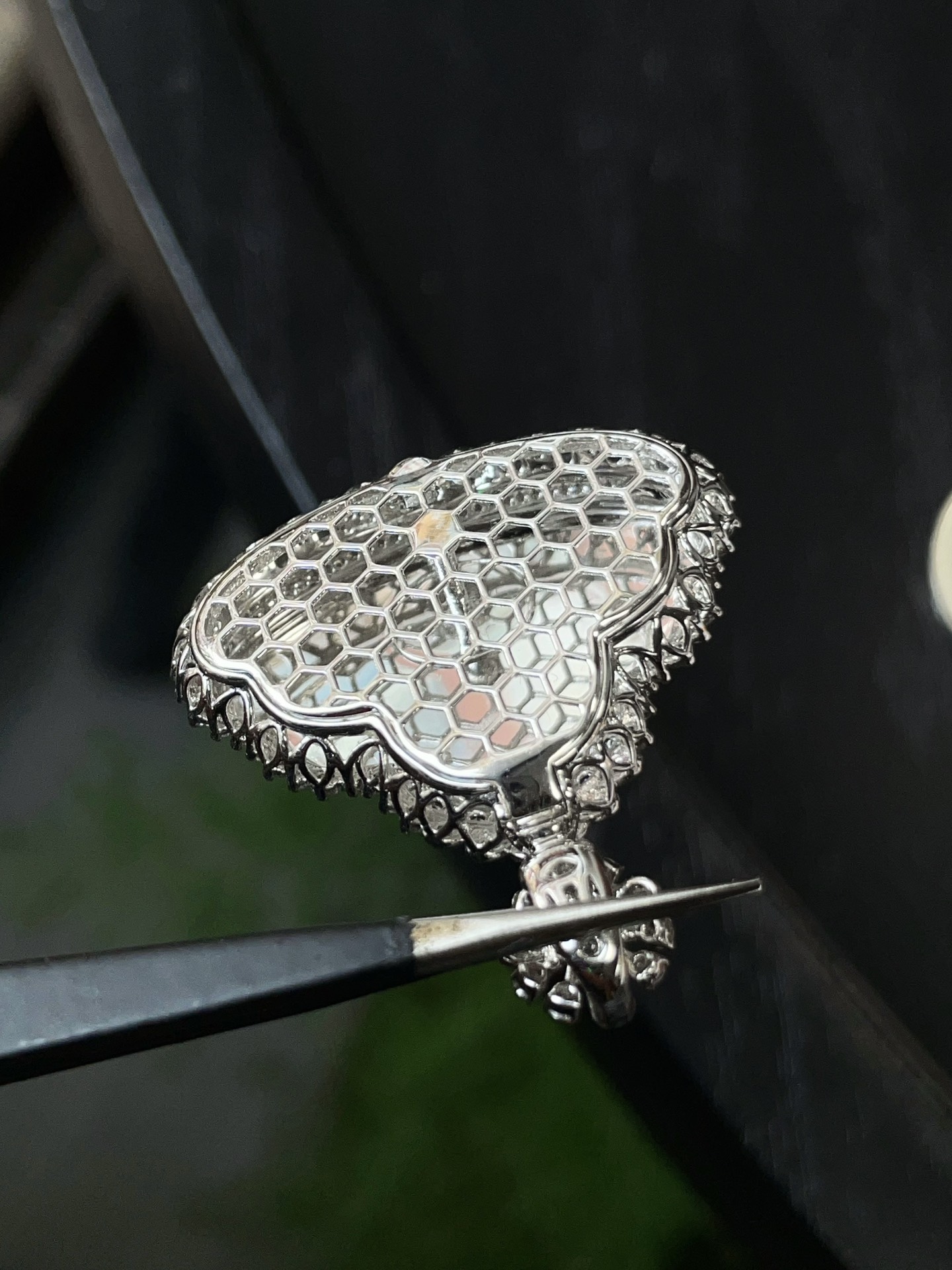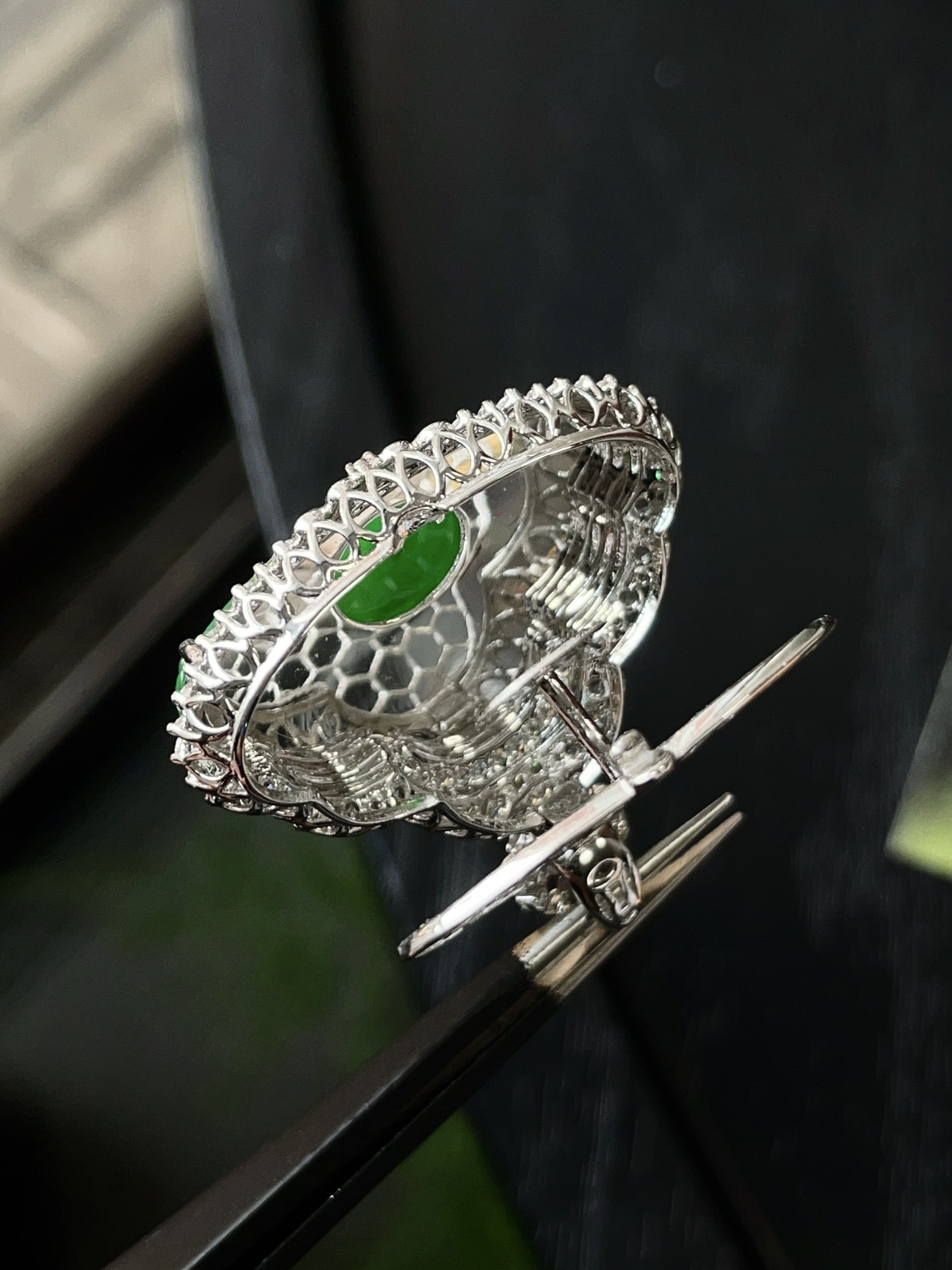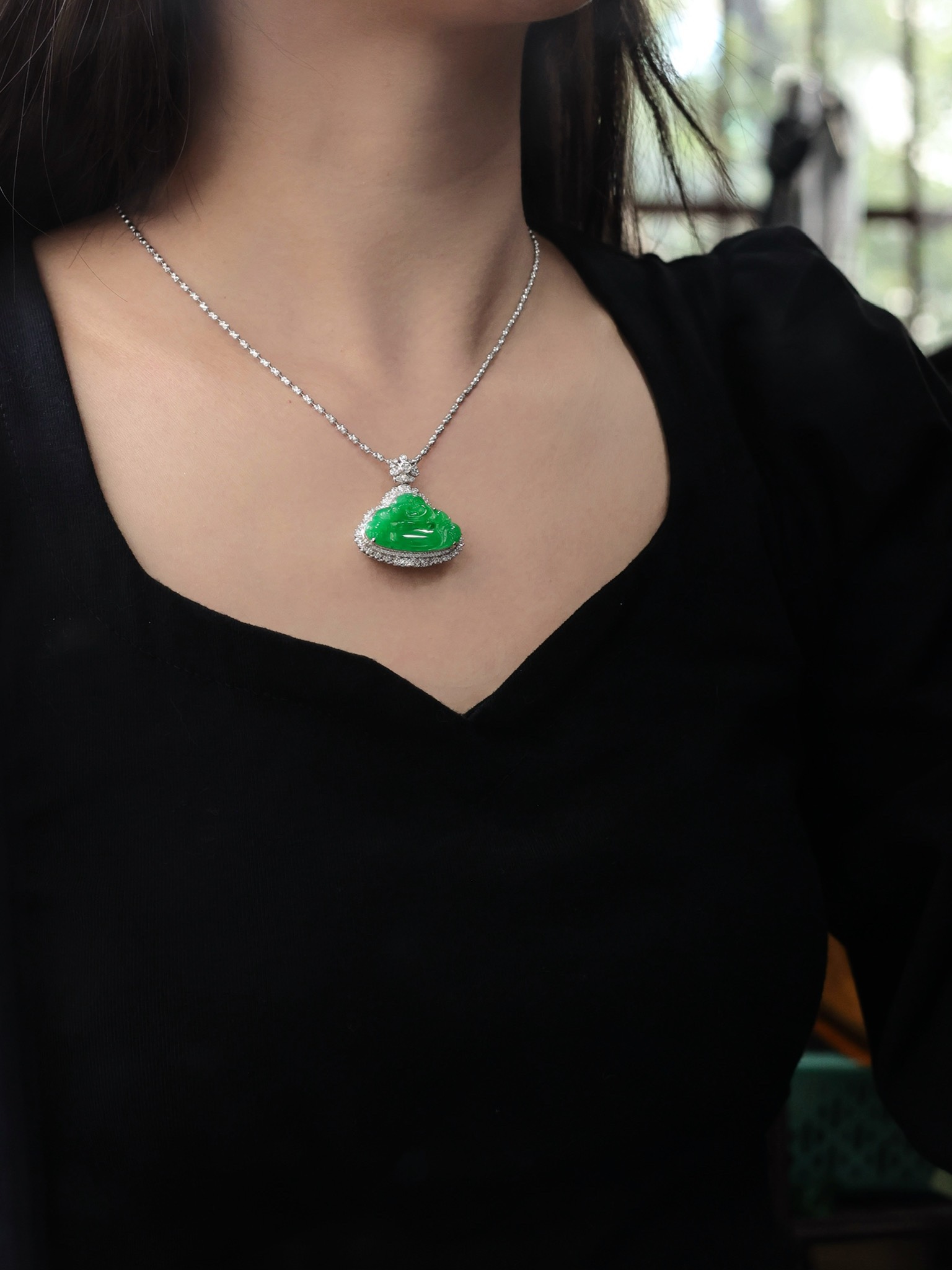 Jade pendant, 18k gold studded with green Buddha Gong pendant, overall: 32.0-30.1-9.8, bare stone: 16.6-26.3