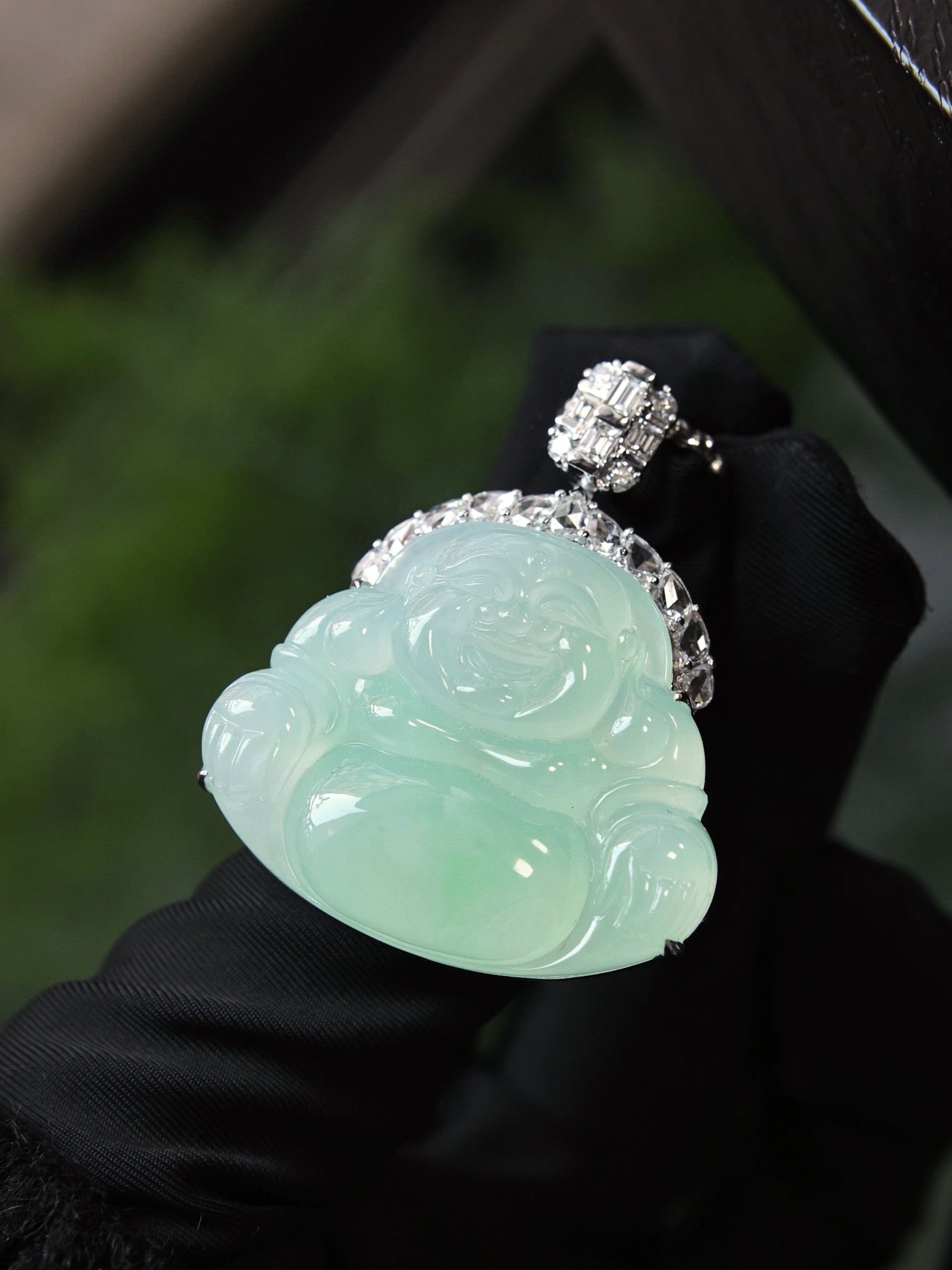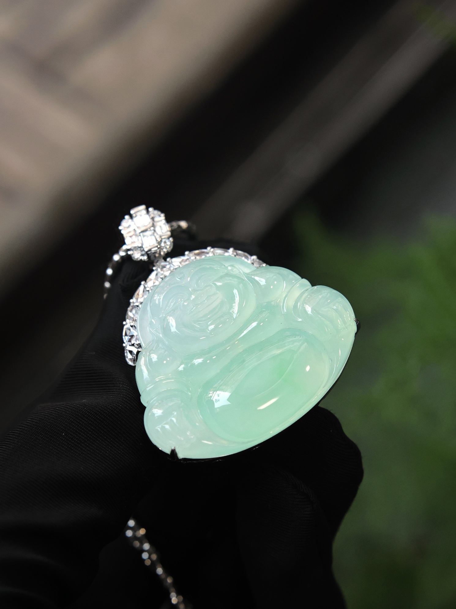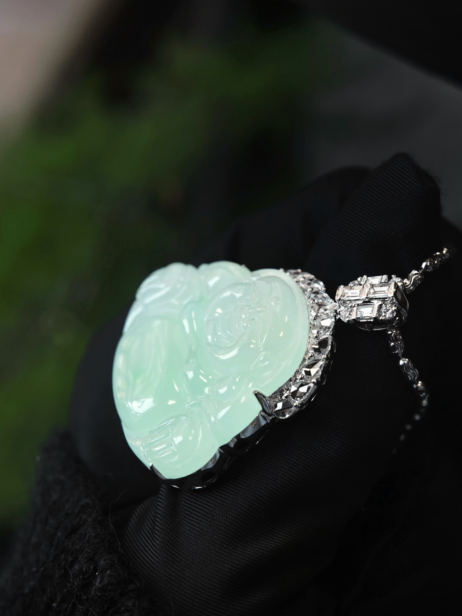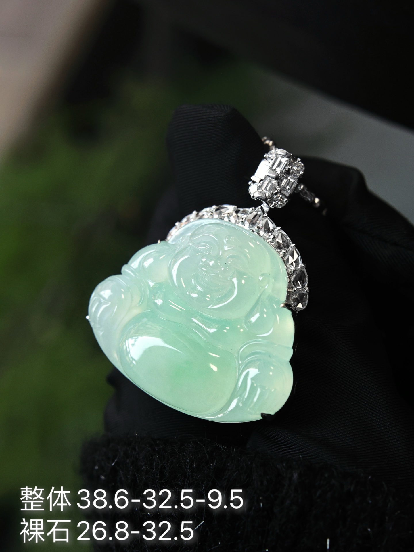 Emerald ring, full of green egg face ring, large diamond setting, overall: 23.1-22.15.5, bare stone: 15.0-13.5