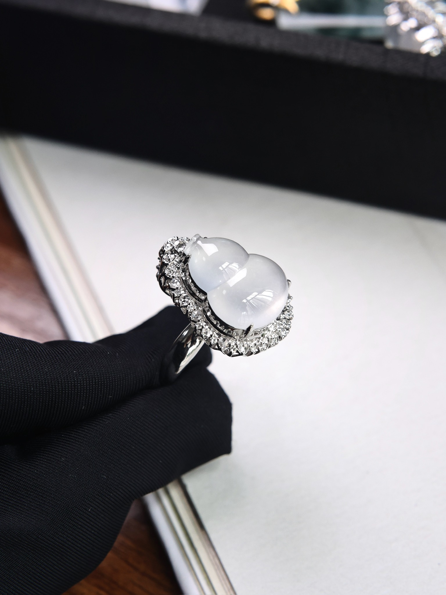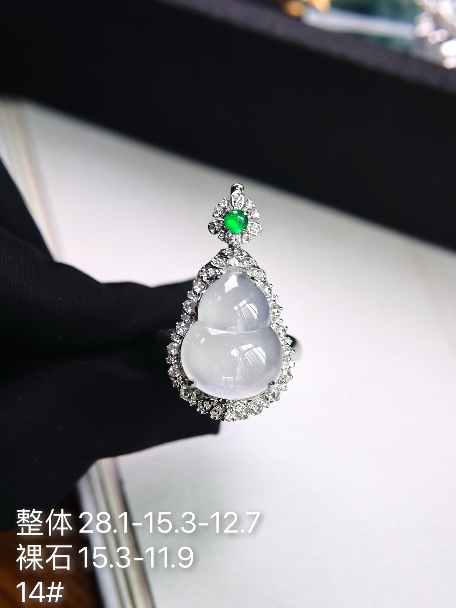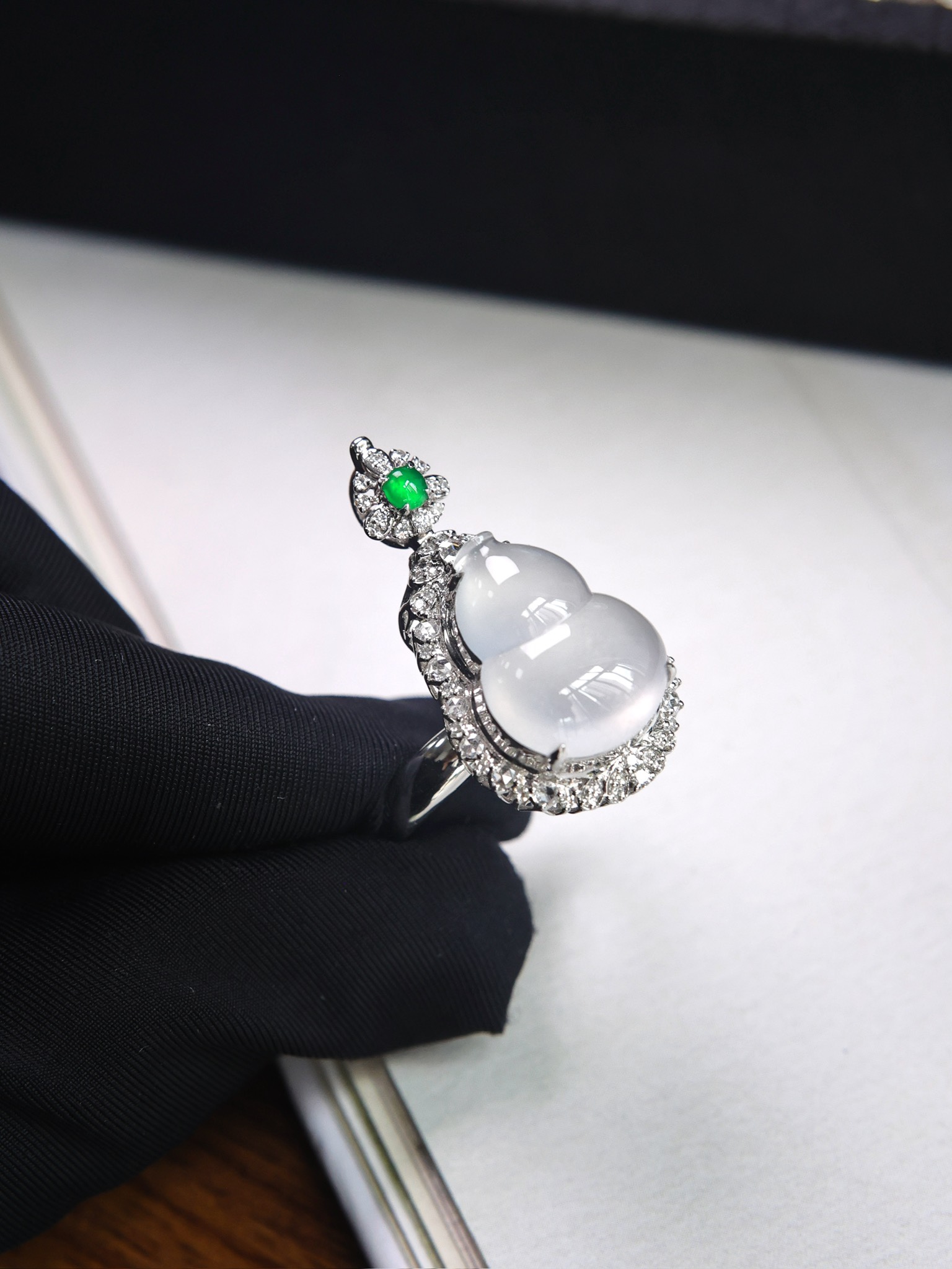 Jade ring, 18k gold inlay gourd ring pendant dual-purpose, overall: 29.5-16.1-13.0, bare stone: 15.3-11.7