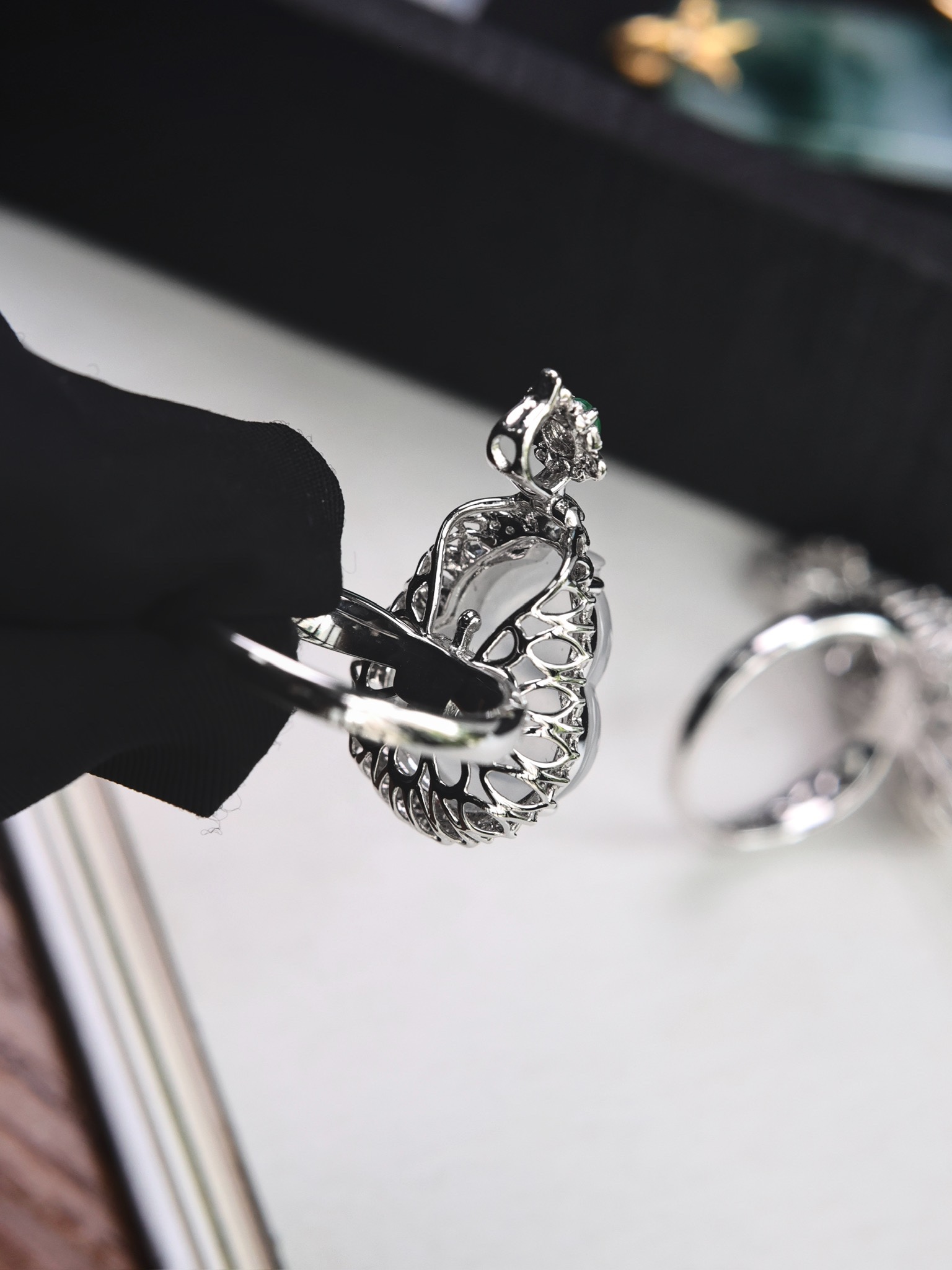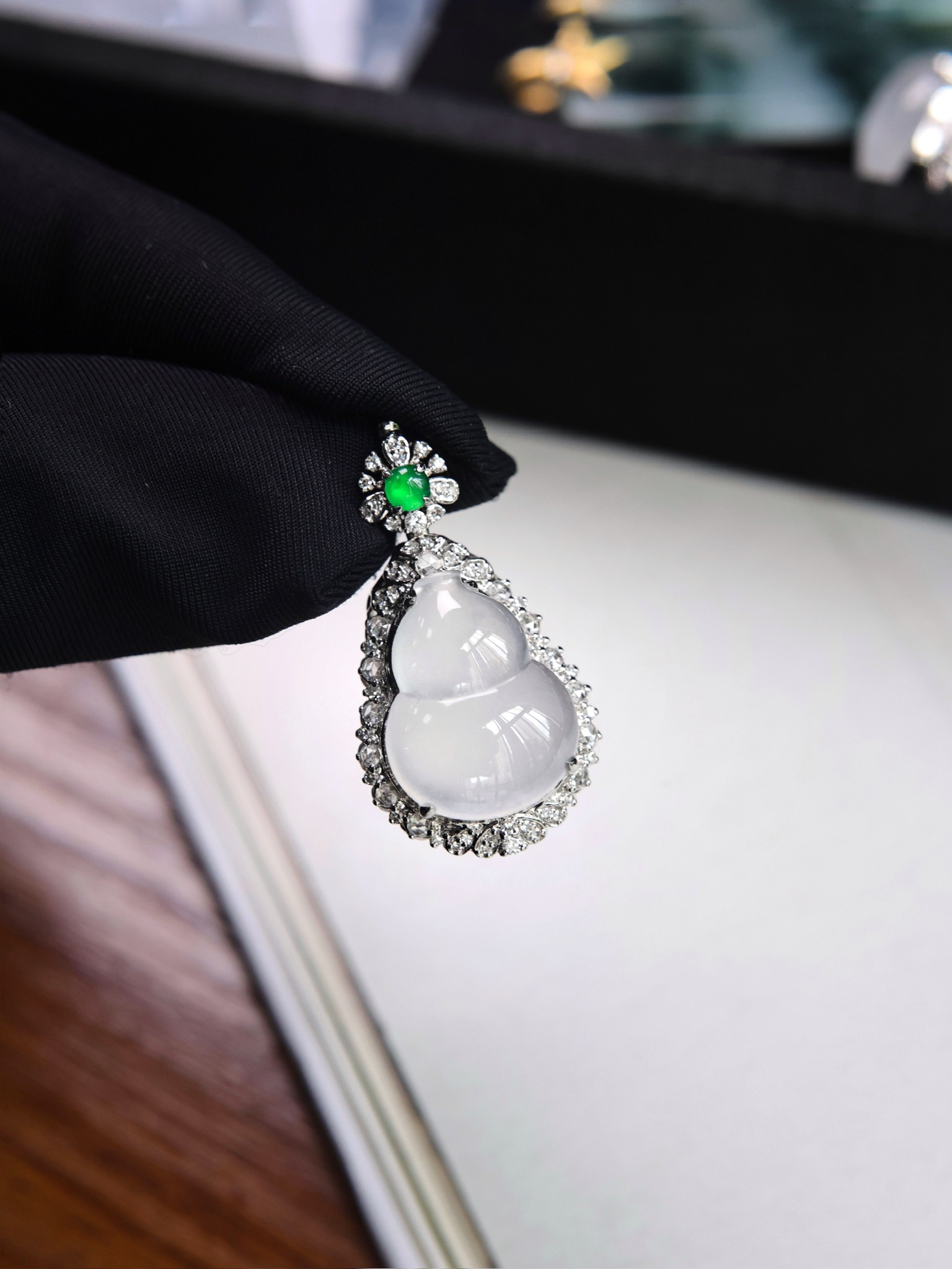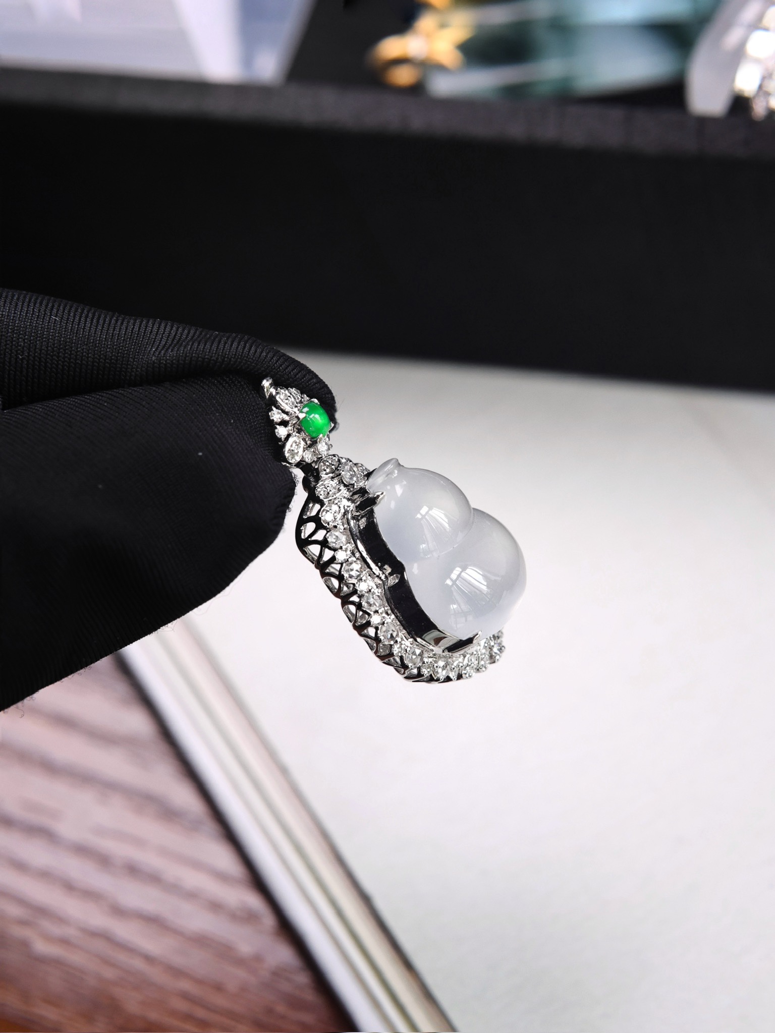 Jade ring, 18k gold inlay gourd ring pendant dual-purpose, overall: 29.5-16.1-13.0, bare stone: 15.3-11.7